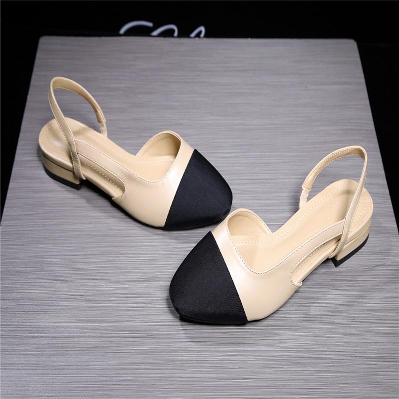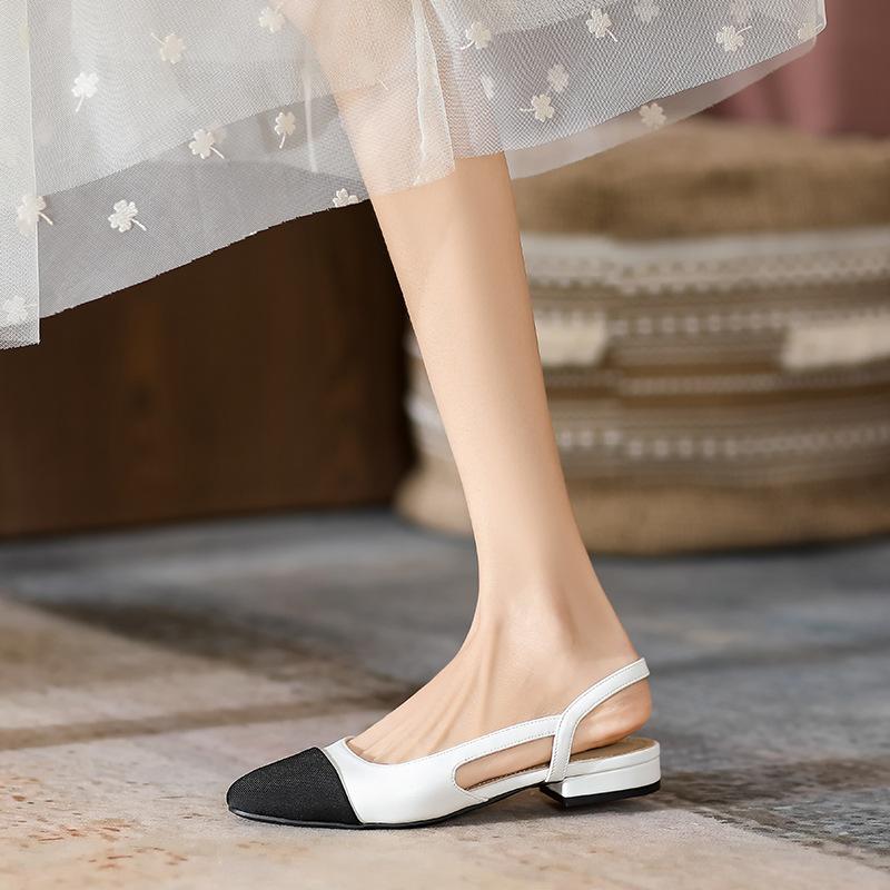 2024 Босоножки Baotou на низком каблуке с плоской подошвой и цветными блоками для женщин