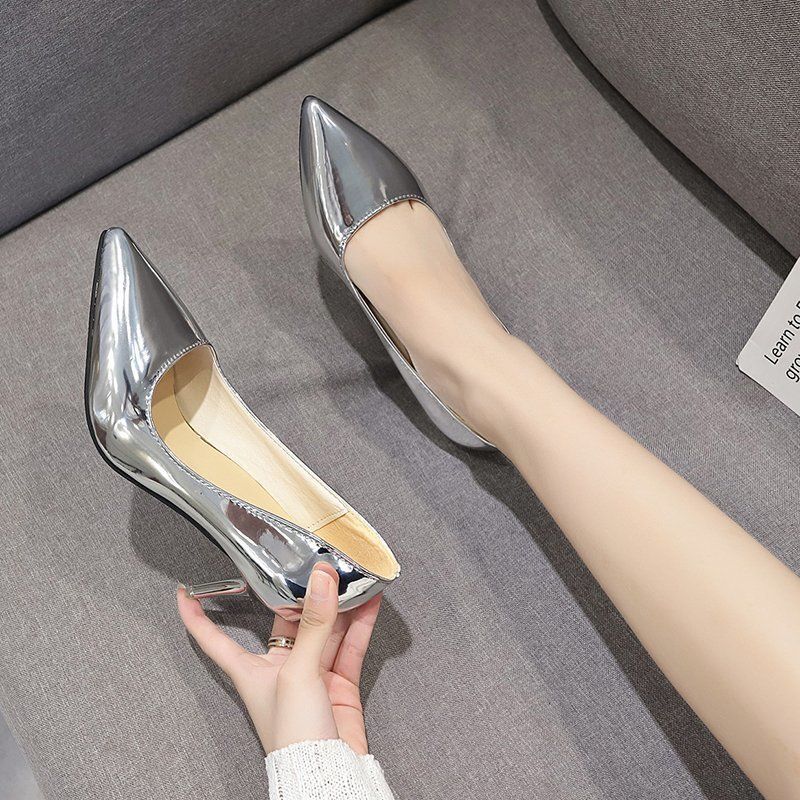 Сексуальные туфли на каблуках женские туфли-лодочки из лакированной кожи на высоком каблуке больших размеров модные туфли на шпильке для вечеринок и свадеб, женские туфли на шпильках, золотистые, серебристые