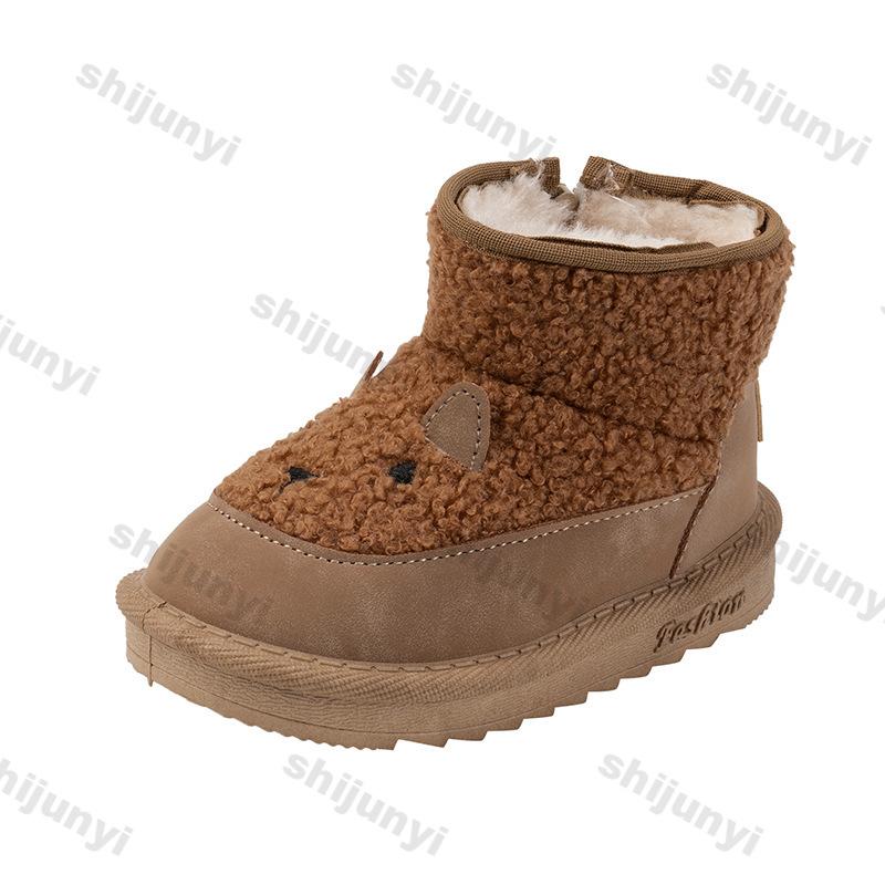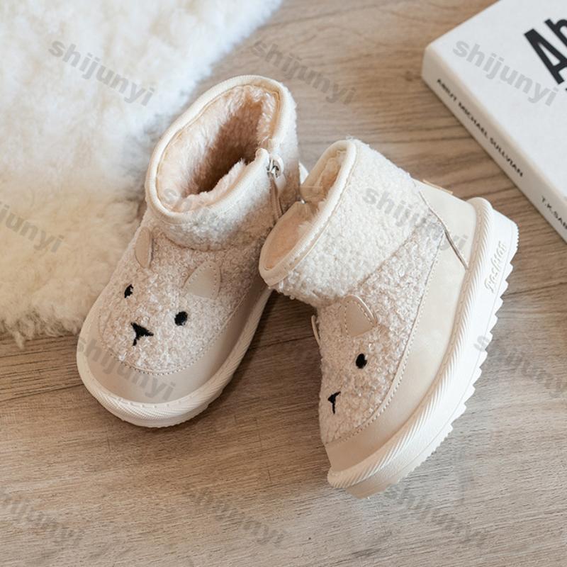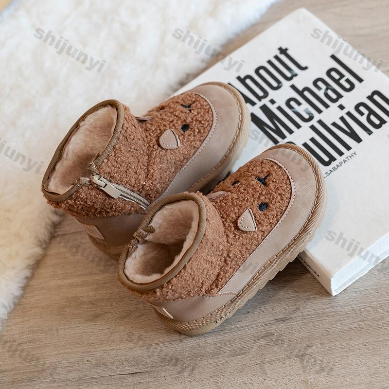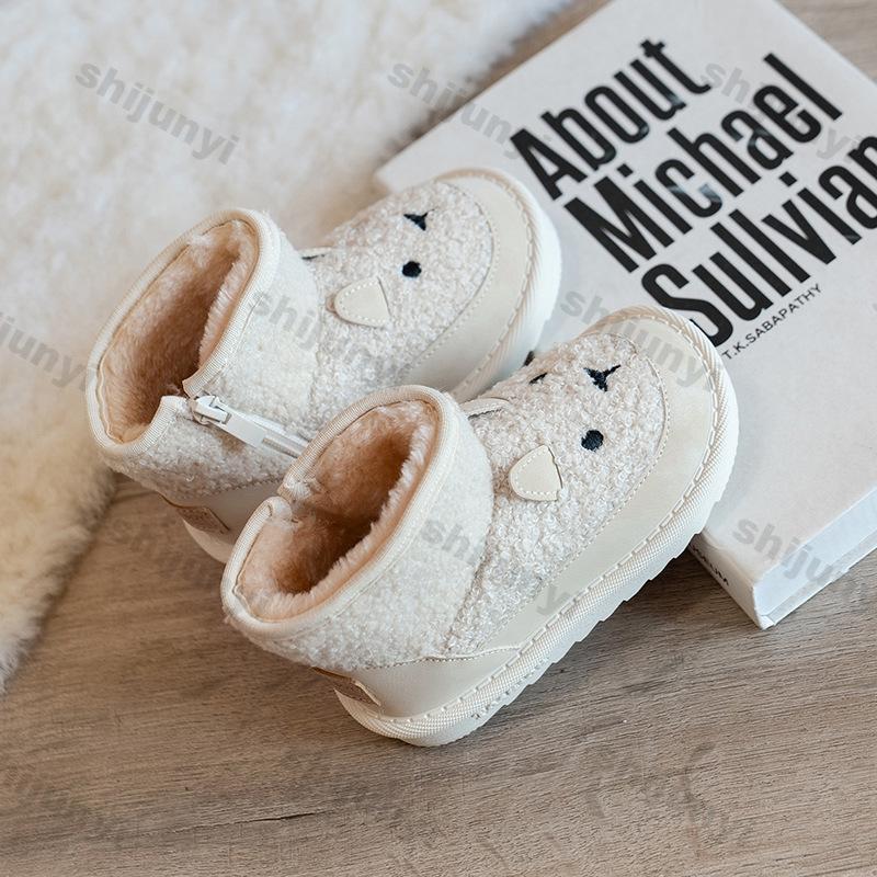 Детские зимние сапоги с рисунком милые 2024 зимние новые плюшевые удобные нескользящие теплые хлопковые сапоги для мальчиков и девочек на молнии уличные сапоги