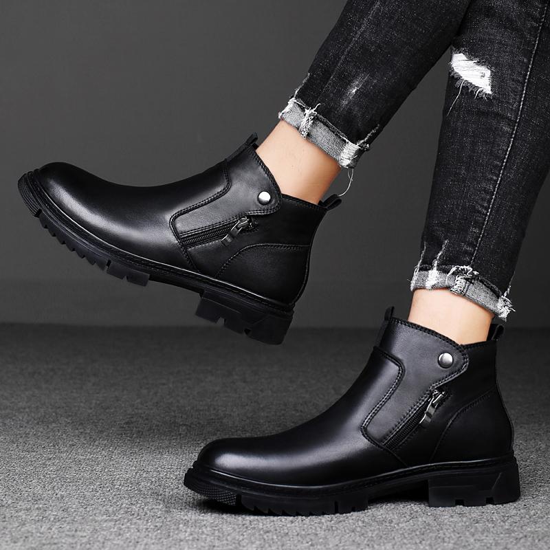 Мужские повседневные кроссовки из натуральной кожи на шнуровке, уличные ботинки, теплые плюшевые зимние ботинки для мужчин, боковая молния, новые мотоциклетные ботинки