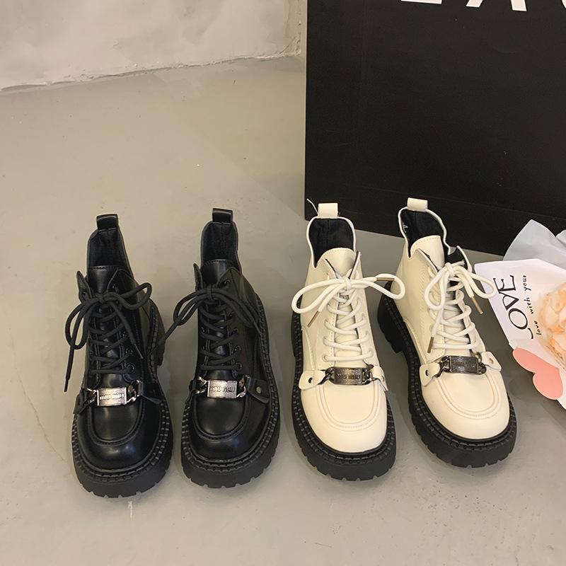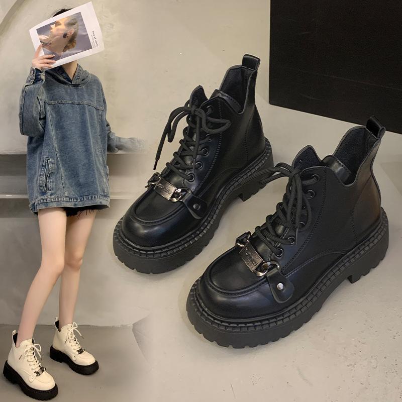 Женские ботинки 2024 года с толстой подошвой из бисквита Весна и осень Женские короткие ботинки в британском стиле Sweet and Cool