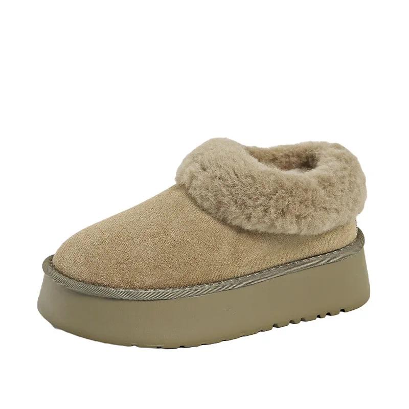 Зимние ботинки 2025 года, теплые ботинки на толстой подошве, женские зимние туфли на плоской подошве, короткие повседневные туфли на щиколотке из плюша и меха, спортивные замшевые ботинки для мотоциклистов