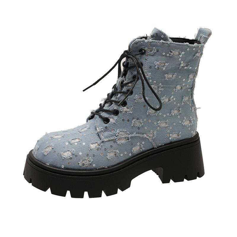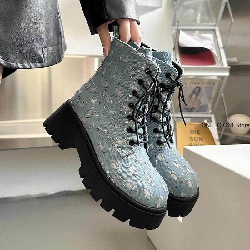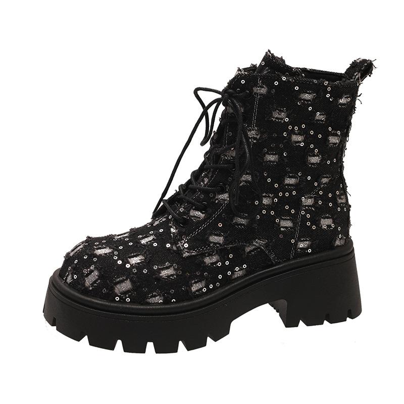 Ботильоны на толстой платформе с панковскими блестками для женщин 2024 Y2K, джинсовые ботинки с толстой подошвой в стиле пэчворк, женские черные готические ботинки Mujer