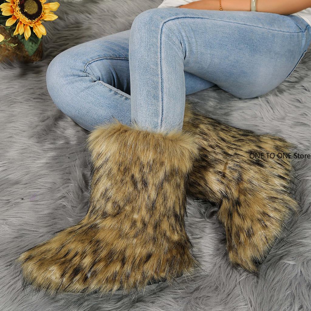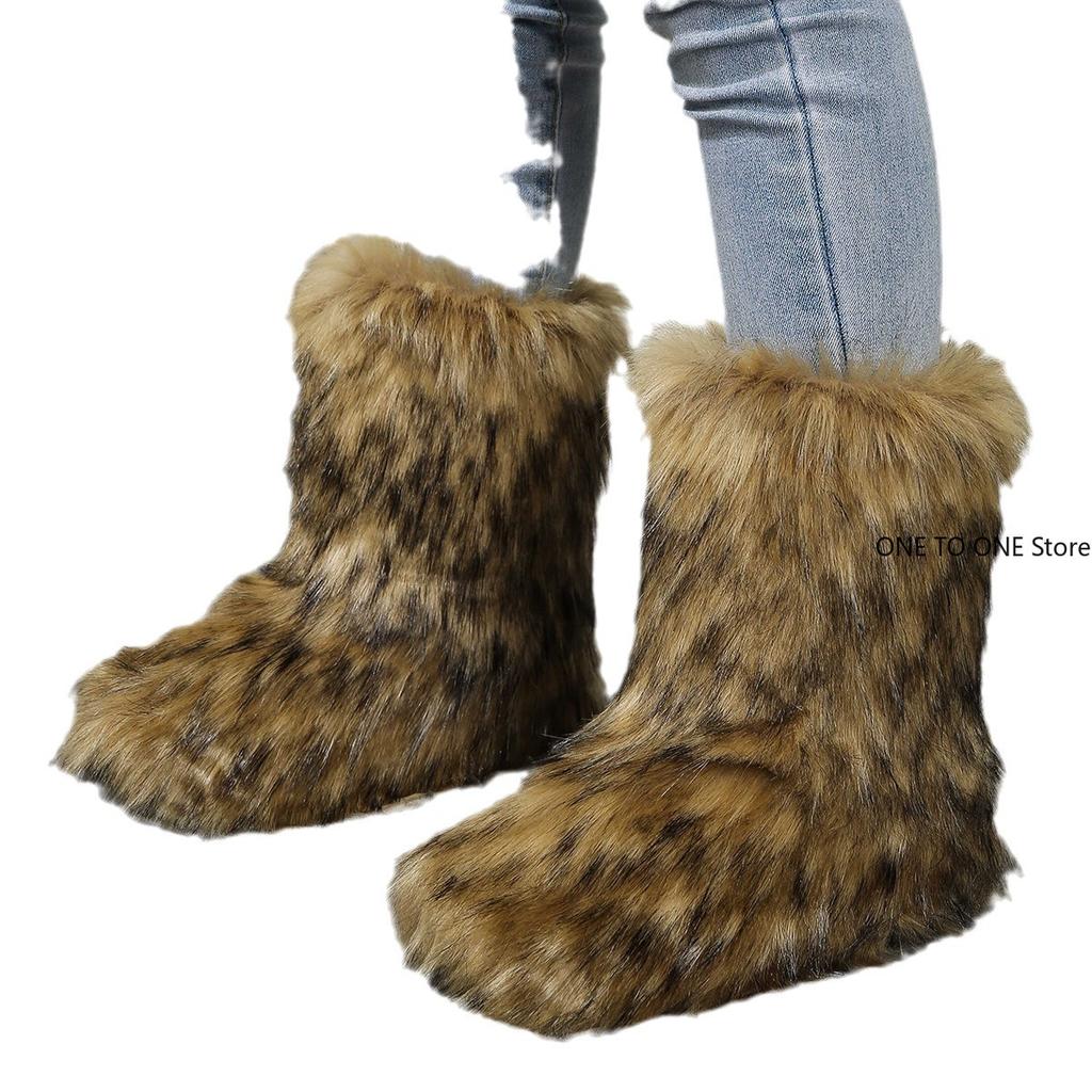 2024 Новые женские зимние сапоги для отдыха на открытом воздухе, роскошные меховые сапоги из искусственного меха лисы, новые модные сапоги, женские плюшевые теплые туфли на платформе, Bottes