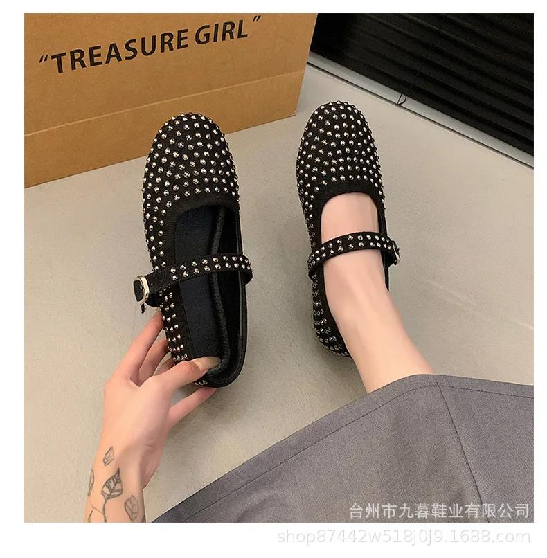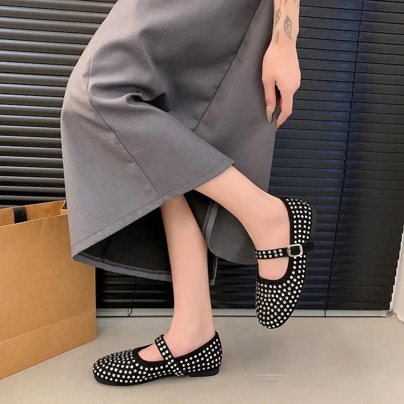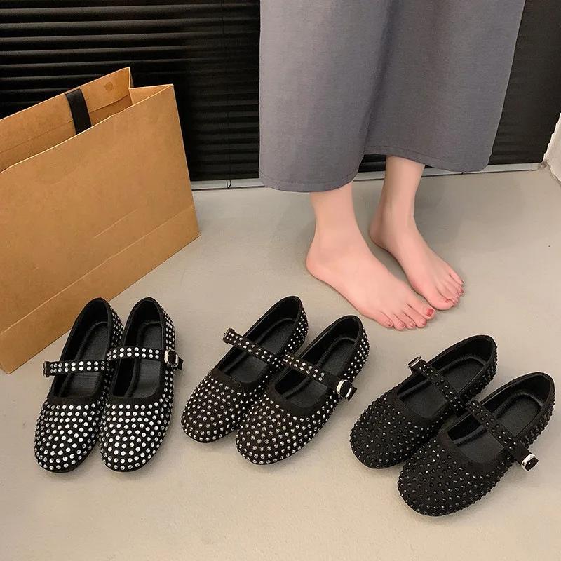 Женские туфли на плоской подошве Vulcanize Designer Loafers Diamond Rivet Туфли Mary Jane Женские туфли на плоской подошве с кристаллами и заклепками Балетки Lolita