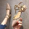Заклепки остроконечные свадебные туфли женские пряжки Т-образный ремешок высокие каблуки женские босоножки римские туфли-лодочки лакированная кожа одинарные заклепки — купить товар онлайн с бесплатной доставкой по всему миру!