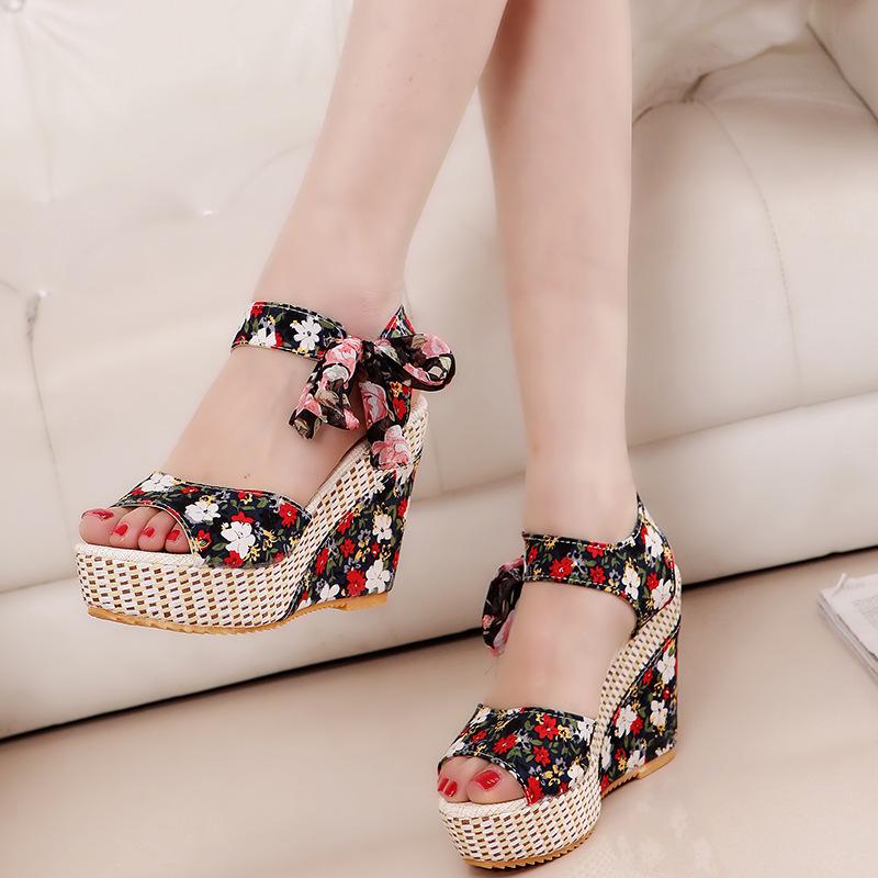 2024 Толстая подошва скошенный каблук высокий каблук рыбий рот Matsuke каблук лента модные сандалии