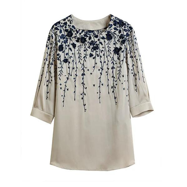 WTEMPO О-образный вырез с вышивкой шикарный ретро элегантный О-образный вырез рубашки весна-лето длинный рукав повседневные универсальные топы блузки — купить товар онлайн с бесплатной доставкой по всему миру!