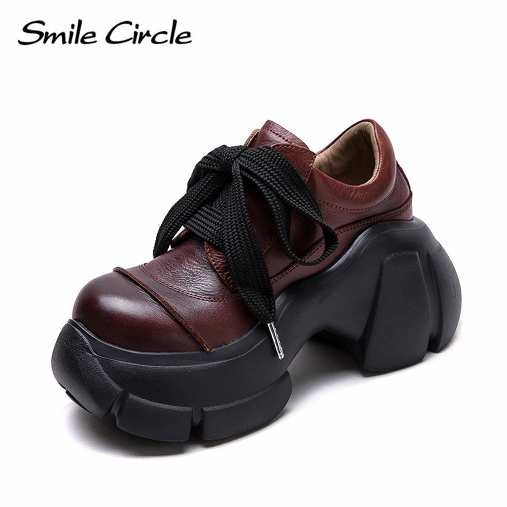 Женская повседневная обувь из натуральной кожи с круглым носком, увеличивающая рост, обувь на толстой подошве, модная удобная обувь на плоской подошве — купить товар онлайн с бесплатной доставкой до всему миру!