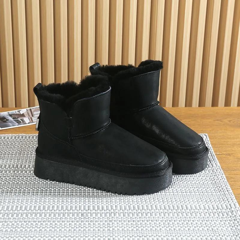 Зимние новые ботинки 2024 года, женские меховые, короткие, на толстой подошве, с шерстяной утолщенной водонепроницаемой хлопковой обувью