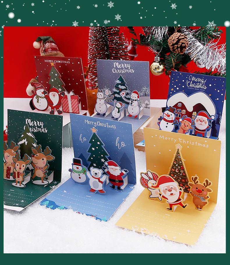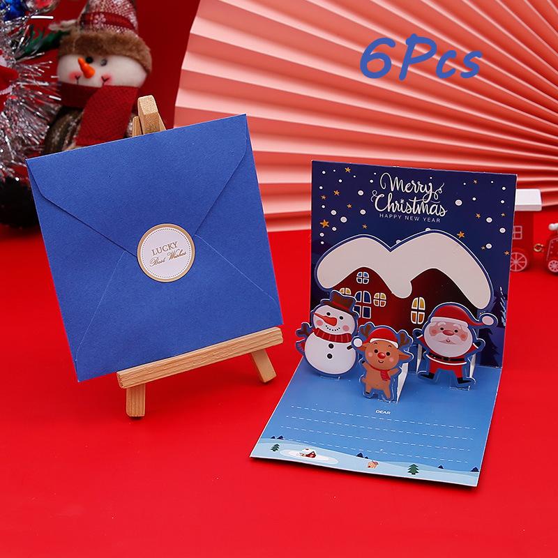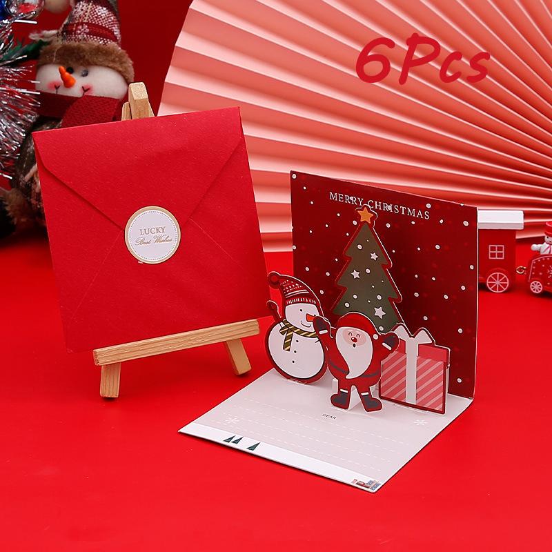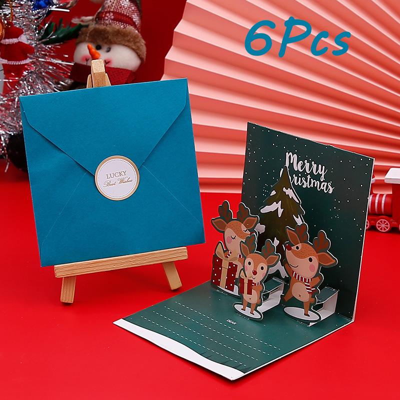 3D Рождественская поздравительная открытка Коллекция праздничных поздравительных открыток с конвертом Зимний праздничный подарок Раскладная рождественская подарочная карта 6 шт. в упаковке