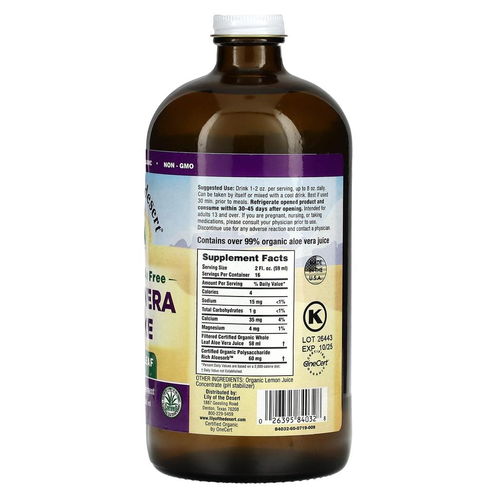 Lily of the Desert, органический, сок алоэ вера, цельный лист, 32 жидких унции (946 мл)
