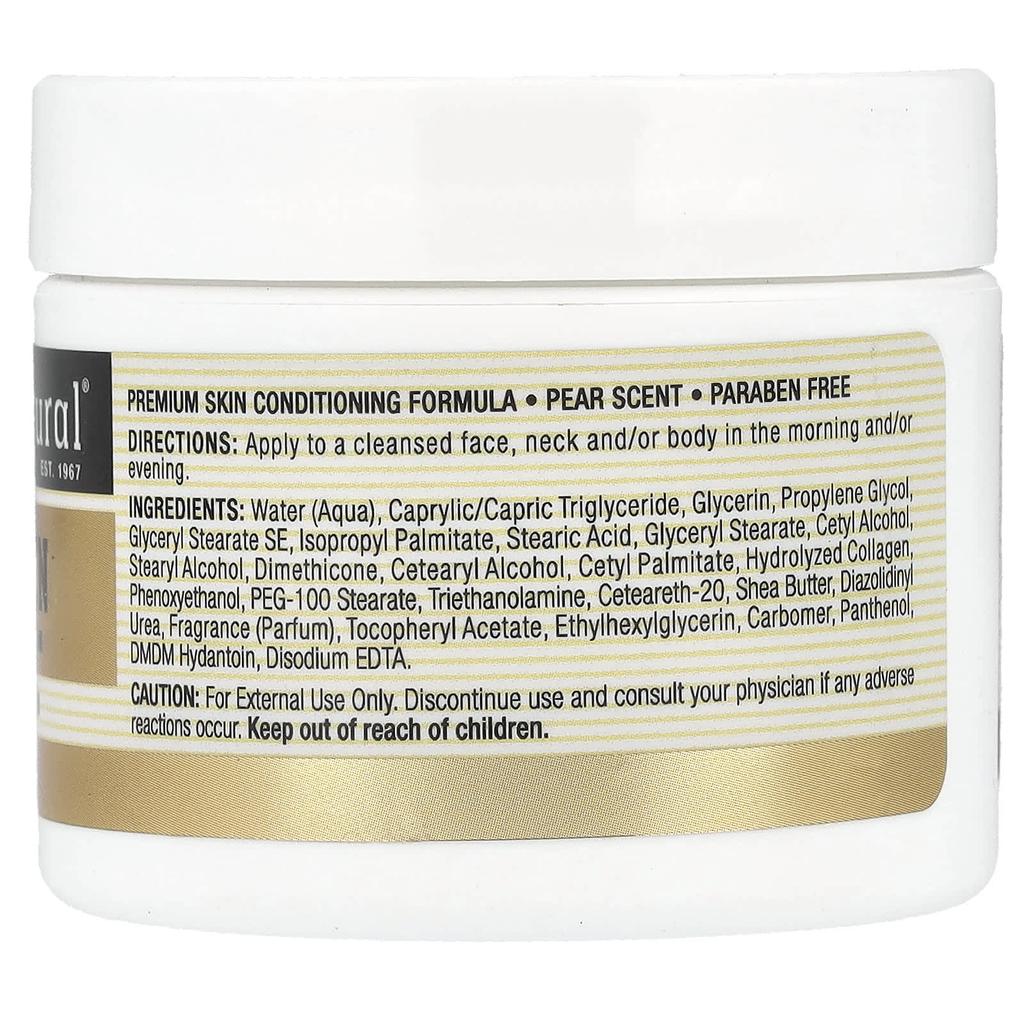 purified water (water), caprylic/capric triglyceride, glycerin, propylene glycol, glyceryl stearate se, isopropyl palmitate, stearic acid, glyceryl stearate, cetyl alcohol, stearyl alcohol. , dimethicone, cetearyl alcohol, cetyl palmitate, hydrolyzed collagen, phenoxyethanol, peg-100 stearate, triethanolamine, ceteareth-20, shea butter, diazolidinyl urea, fragrance, tocopheryl acetate, ethylhexylglycerin, carbomer, panthenol, dmdm hydantoin, disodium edta .