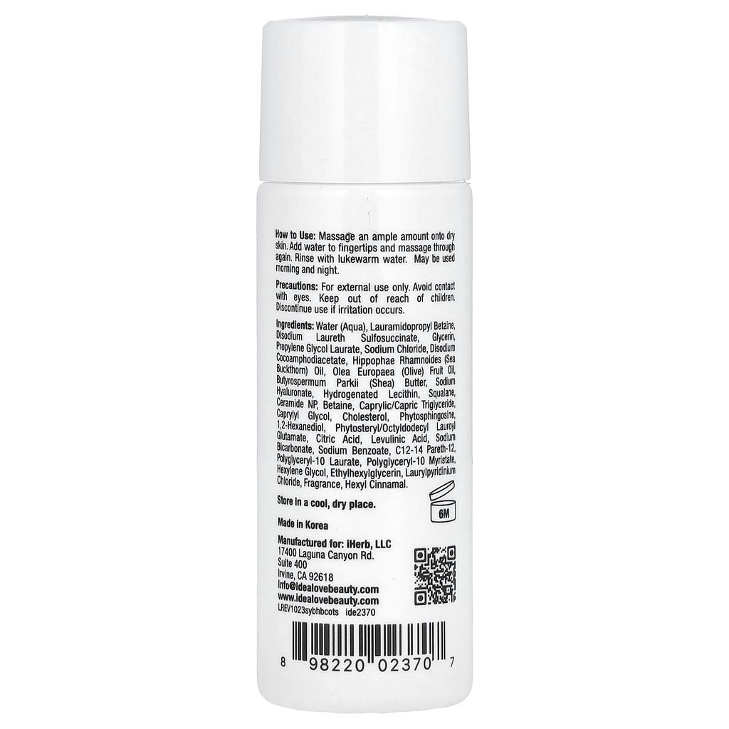 Ингредиенты: Очищенная вода (воды), лаурамидопропилбетаин, динатрий лаурет сульфосукцинат, глицерин, пропиленгликолаурат, хлорид натрия, динатрий кокоамфодиацетат, масло облепихи крушиновидной, оливковое масло ( Олея европейская) фруктовое масло, ши (Butyrospermum parkii) масло, гиалуронат натрия, гидрогенизированный лецитин, сквалан, церамид NP, бетаин, каприловый/каприновый триглицерид, каприлилгликоль, холестерин, фитосфингозин, 1,2-гександиол, фитостерил/октилдодециллауроил глутамат, лимонная кислота, левулиновая кислота, бикарбонат натрия, бензоат натрия, C12-14pares-12, полиглицерил-10 лаурат, полиглицерил-10 миристат, гексиленгликоль, этилгексилглицерин, лаурилпиридинийхлорид, отдушка, гексилциннамаль.