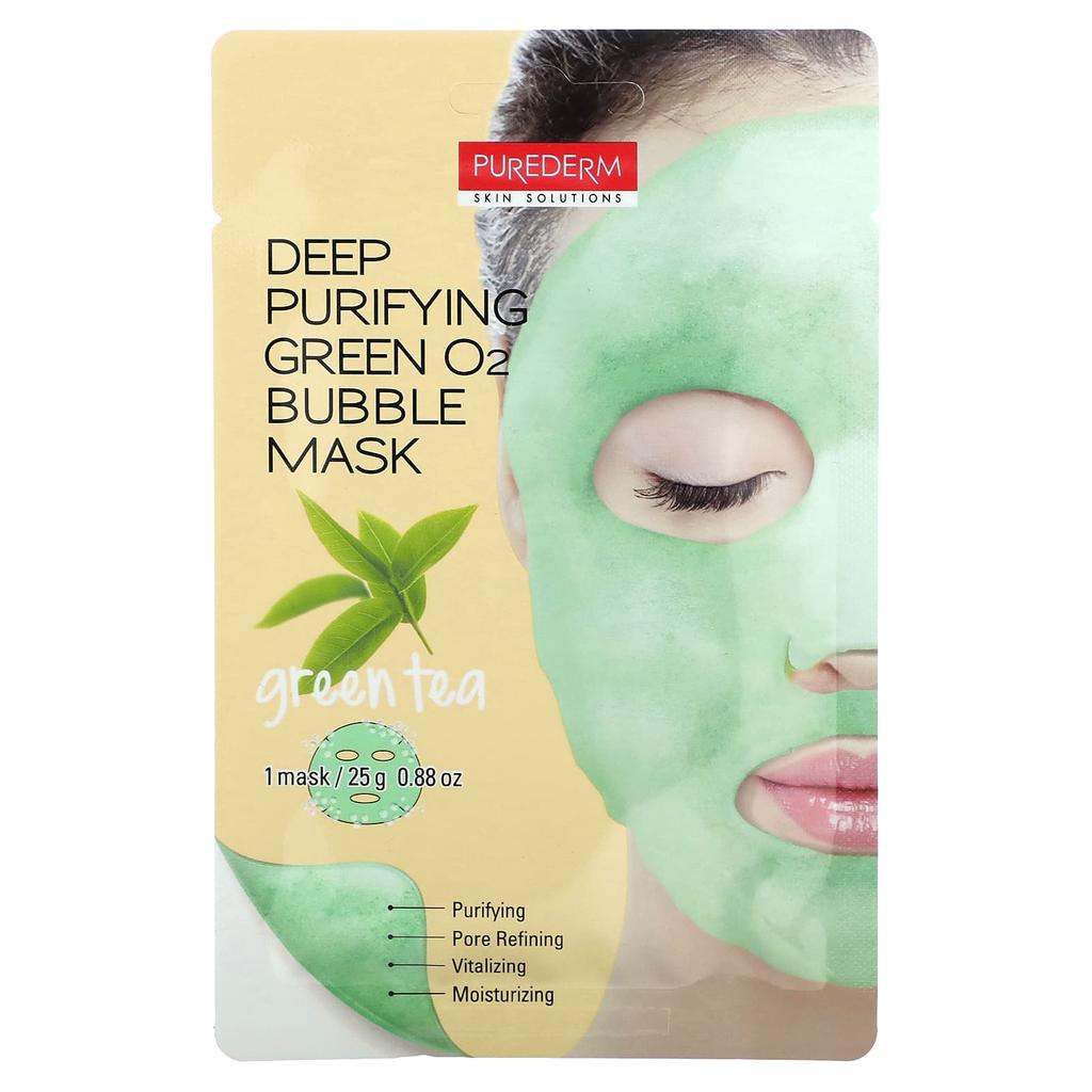 Purederm, Маска для глубокого очищения Green O2 Bubble Beauty, зеленый чай, 1 тканевая маска, 0,88 унции (25 г)