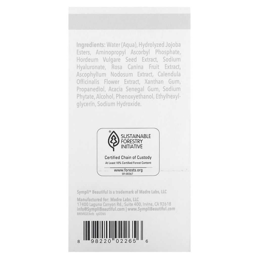 Описание товара: Sympli® Beautiful Serumdipity Age Refining Vitamin C SerumЗащита и профилактика Антивозрастной, быстро впитывающийся и увлажняющий эффект Содержит стабилизированный витамин С Завершает яркий и сияющий тон кожи Способствует биосинтезу коллагена Устраняет мелкие морщины, морщины и пигментные пятна Поддерживает баланс pH и подходит для всех типов кожи Подходит* Не содержит парабенов, фталатов и красителей Не тестировалось на животных Сертификация SFI Экологичная упаковка Sympli® Beautiful Serumdipity Age Refining Vitamin C Serum — это быстро впитывающееся средство, содержащее стабилизированный витамин С, который осветляет и осветляет кожу. Эта увлажняющая процедура не только уменьшает появление тонких линий, морщин и пигментных пятен, но и способствует биосинтезу коллагена.. Мы используем экологически чистую упаковку, сертифицированную SFI.. Мы рады сообщить, что Azelique и Sympli® Beautiful, наша линия по уходу за кожей, предлагающая индивидуальные решения по уходу за кожей с использованием преимуществ натуральных ингредиентов, объединяются.. Даже несмотря на эти изменения, мы обещаем продолжать предоставлять высококачественные ингредиенты и уникальные формулы.. Испытайте сочетание высококачественных ингредиентов и уникальных формул с линией Sympli® Beautiful и наслаждайтесь сияющей кожей.* Прекратите использование, если возникнет раздражение.
