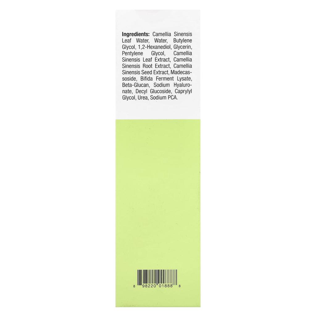 ингредиенты: Основные ингредиенты: сок листьев зеленого чая, очищенная вода, бутиленгликоль, 1,2-гександиол, глицерин, пентиленгликоль, зеленый чай. (чайный куст) экстракт, зеленый чай (чайный куст) экстракт корня, зеленый чай (чайный куст) Экстракт семян, мадекассозид, лизат ферментации бифидобактерий, бета-глюкан, гиалуронат натрия, децилглюкозид, каприлилгликоль, мочевина, натрий PCA. Произведено в Корее.