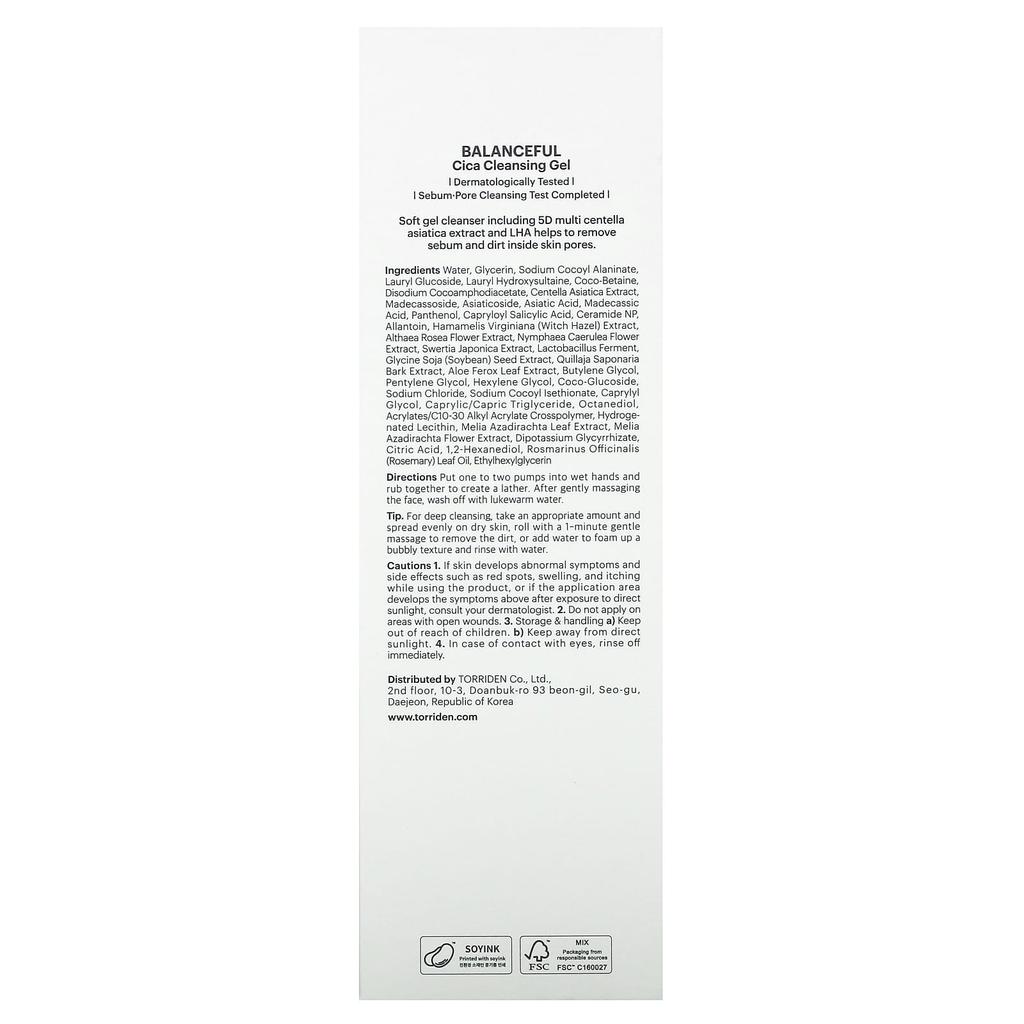 TORRIDEN Очищающий гель Balanceful Cica, 6,76 жидких унций (200 мл)