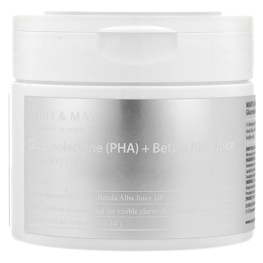 Мэри и Мэй, Глюконолактон (PHA) + Очищающие салфетки с соком березы белой, 70 шт., 270 мл