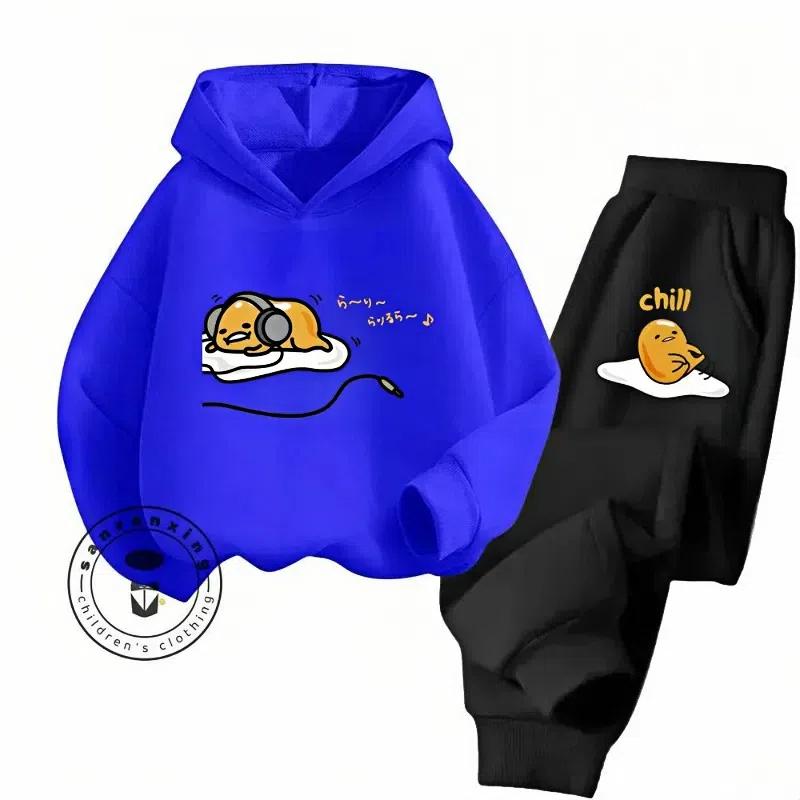 Gudetama Cartoon Супер Милый Чистый Хлопок Мягкая Текстура Толстовка Комплект Подходит Для Детей 3-14 Лет Kawaii Home Travel Одежда