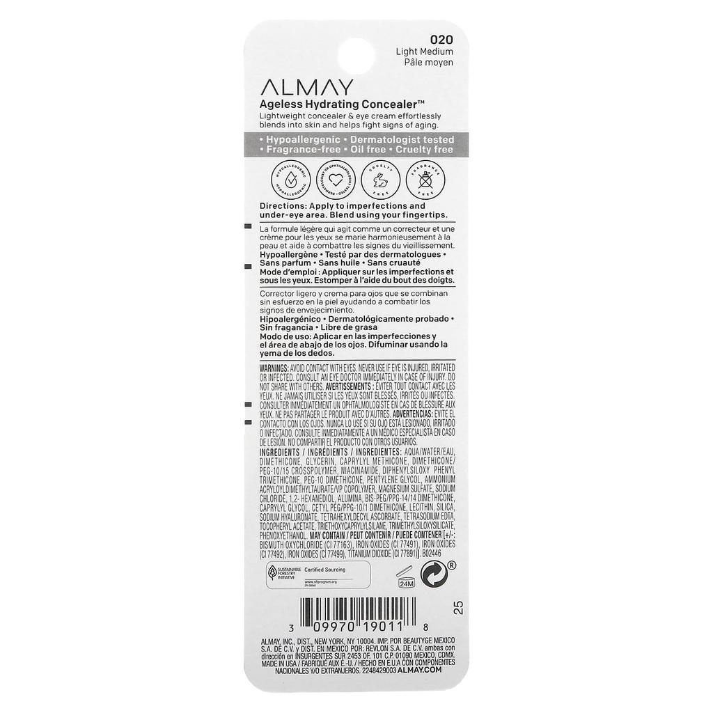 Almay, Ageless Hydrating Concealer, 020 Light Medium, 11 мл (0,37 жидких унций)