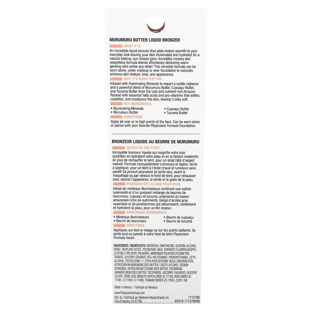 Physicians Formula Butter Glow, жидкий бронзер, 1712790 бронзовый, 1,3 жидких унций (40 мл)