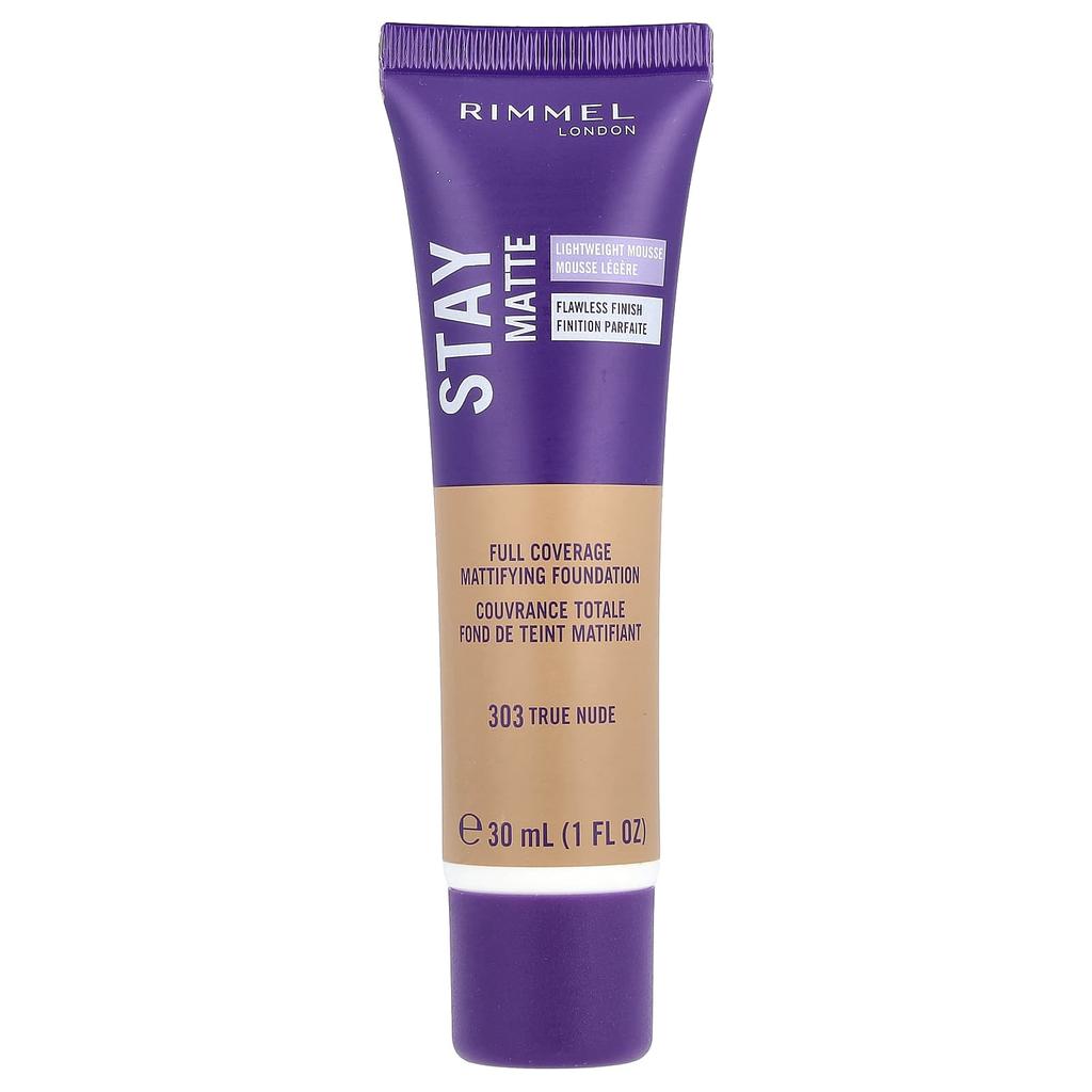 Rimmel London, Stay Matte, матирующая тональная основа с полным покрытием, 303 True Nude, 1 жидкая унция (30 мл)
