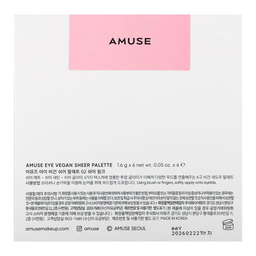AMUSE Палитра теней для век Eye Vegan Sheer, оттенок 02 Sheer Pink, 1,6 г (0,05 унции) каждый