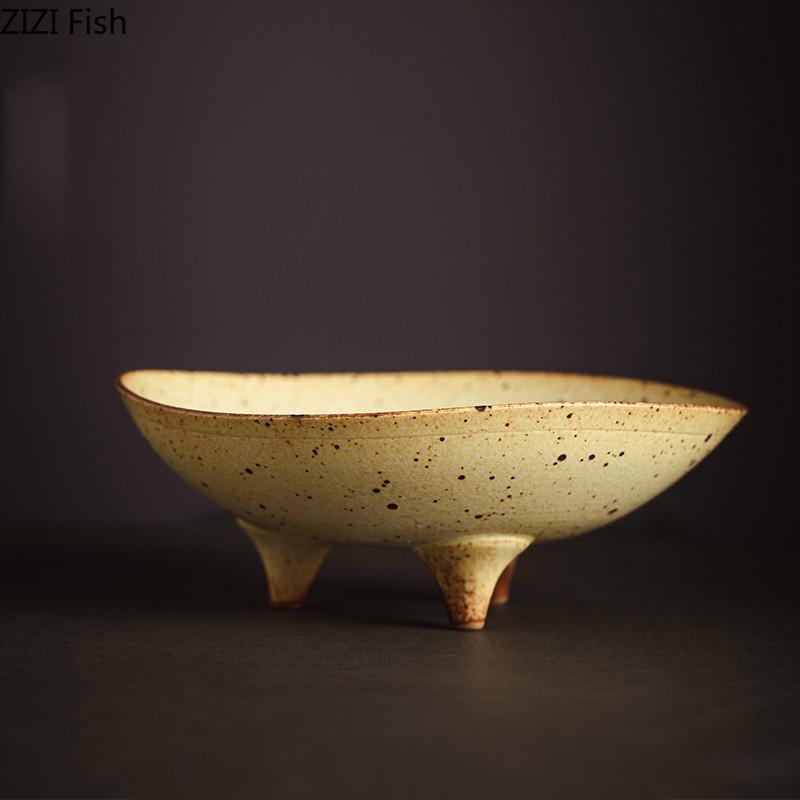 Керамическая тарелка на трех ножках, креативная тарелка для конфет и фруктов в стиле ретро для ресторана, декоративная тарелка для еды, японская посуда