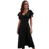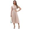 YYFS Женские модные летние весенние однотонные повседневные платья с v-образным вырезом и короткими рукавами и высокой талией