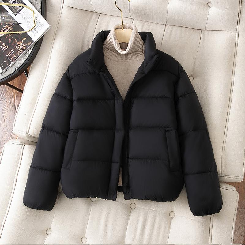 Женская короткая куртка свободного кроя с короткими рукавами и хлопковой подкладкой, 2024 г., зима, утолщенная, с воротником-стойкой
