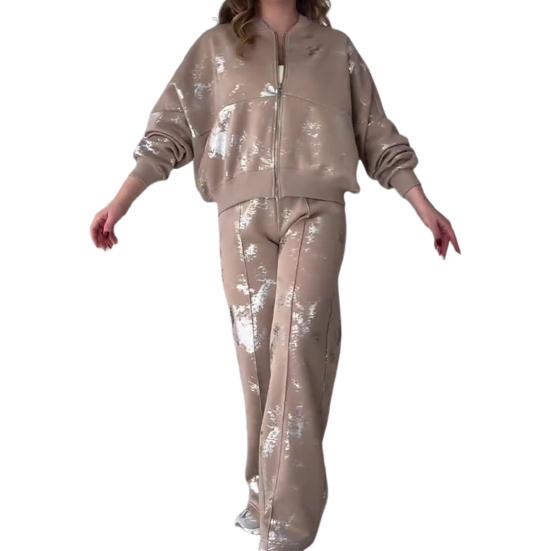 Материал и стиль: Улучшите свой гардероб с помощью этого шикарного и универсального комплекта из двух предметов из дышащего полиэфирного волокна.. Простой, но модный дизайн с принтом, расшитым пайетками, придаст вашему повседневному образу нотку гламура.
