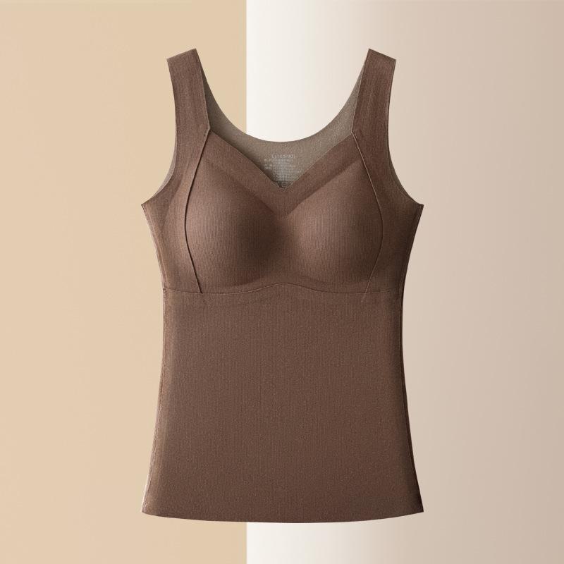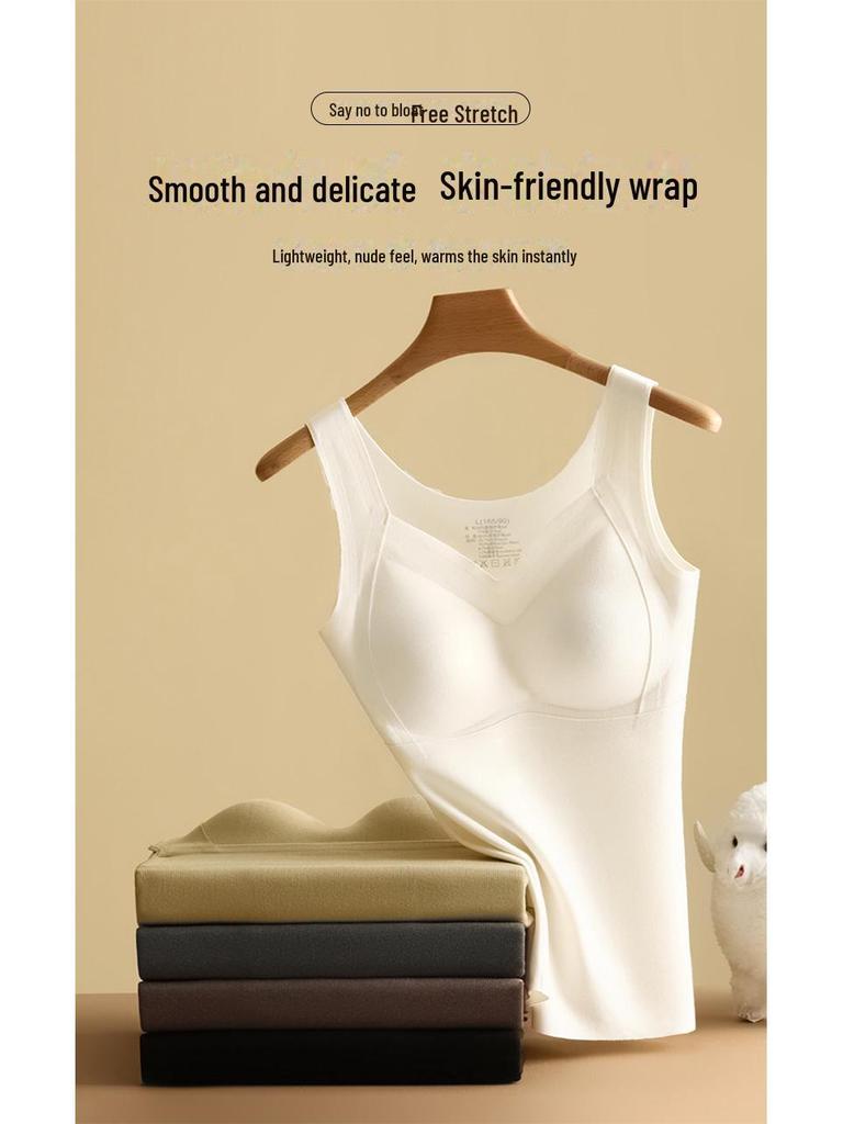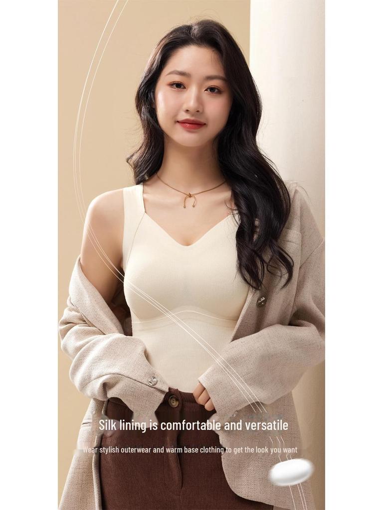 Женский бесшовный теплый жилет с шелковыми вставками вшитого бюстгальтера, осень/зима, плотный низ