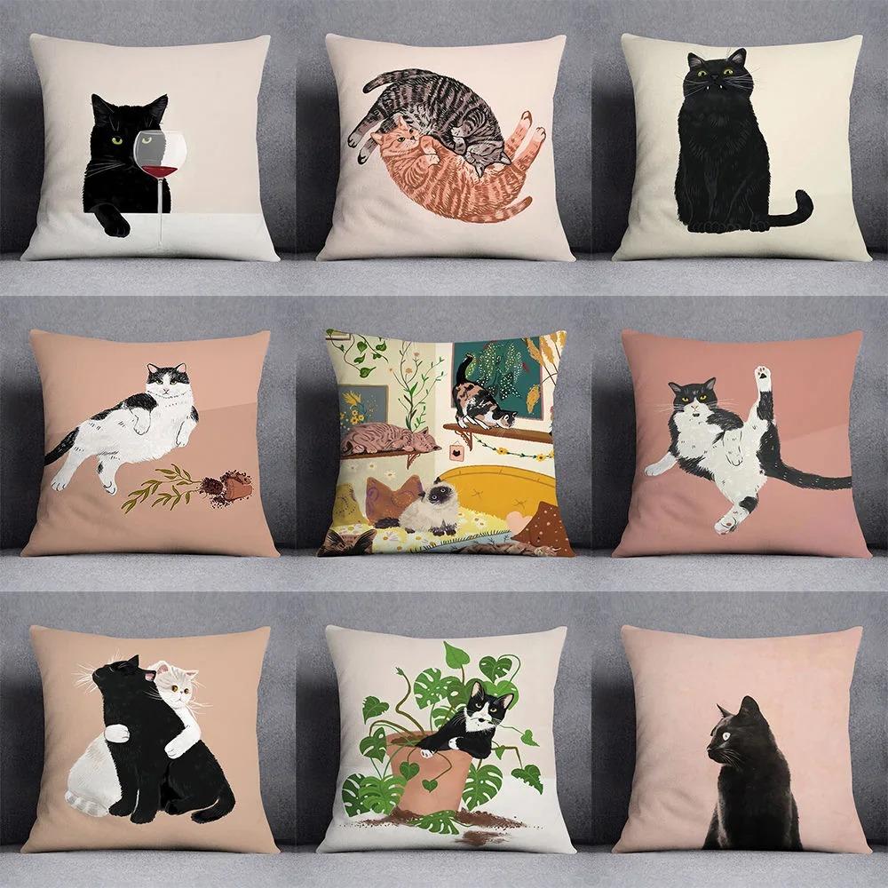 Чехол для подушки в скандинавском стиле с рисунком милого кота для гостиной, спальни, дивана, автомобиля, офиса, сиденья, наволочка