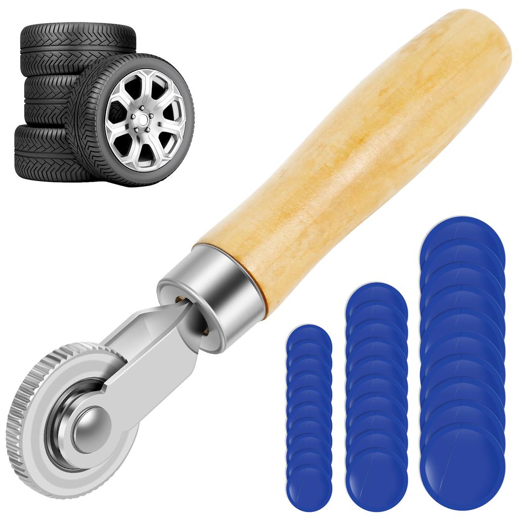 [Удаление застоявшегося воздуха] Автоматический инструмент для сшивания заплаток изготовлен из металла и дерева с зубьями, похожими на зубчатые колеса подшипников, что обеспечивает большее проникающее давление и удаление застоявшегося воздуха, гарантируя хорошее сцепление и герметизацию между заплатой и шиной.