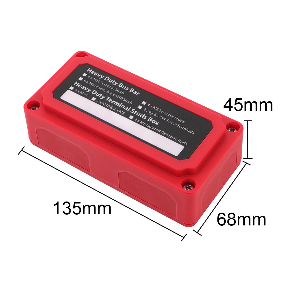 Спецификация :Максимальное рабочее напряжение: DC 48VMax Непрерывный усилитель: 300AТерминальный конный завод : 4 х M8/4 х M10Размер: Как показаноЦвет: черный(Клеммные шпильки M10),Красный(Клеммные шпильки M8)