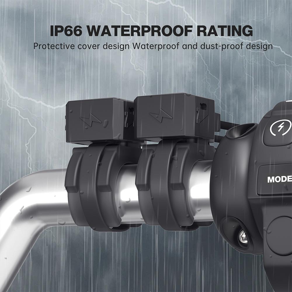 Цельный защитный чехол - USB-зарядное устройство для мотоцикла имеет уникальный дизайн защитного чехла, который более красив и компактен.. Он может более эффективно предотвращать попадание воды и пыли в порт, защищать внутреннюю цепь и, таким образом, продлевать срок службы.