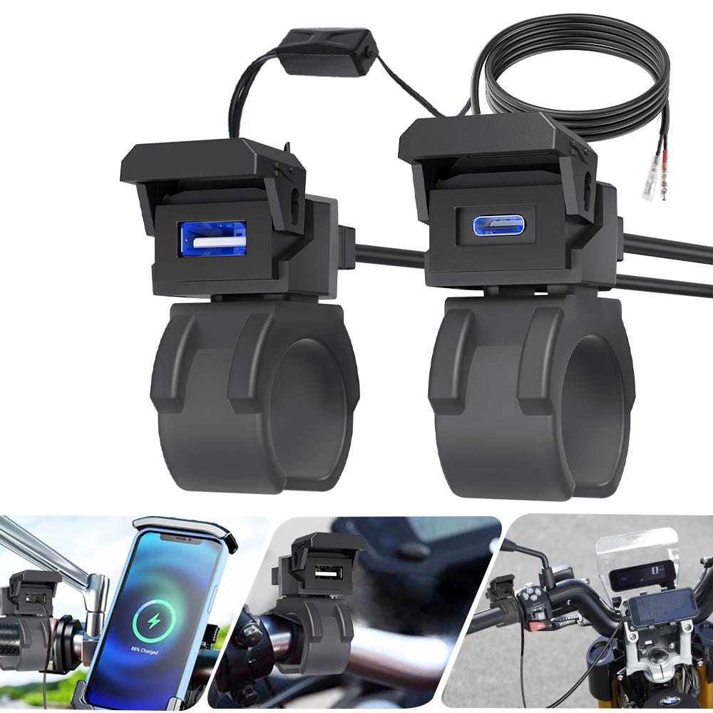 Двойное быстрое зарядное устройство для мотоцикла A+C - модернизированное зарядное устройство для телефона для мотоцикла, оснащенное портом USB-C мощностью 30 Вт (Питание от PD) и 18 Вт USB-A два порта. Поддерживает несколько спецификаций и протоколов быстрой зарядки.. Вы можете заряжать два устройства одновременно.