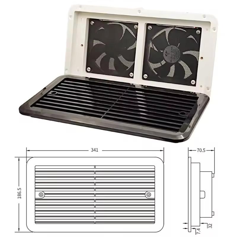 Благодаря размерам всего 13,43 x 7,34 x 2,78 дюйма этот вентилятор идеально подходит для ограниченного пространства, что делает его идеальным выбором для автофургонов, кемперов, автодомов, прицепов, лодок и яхт.. Компактная конструкция не идет в ущерб эффективности.