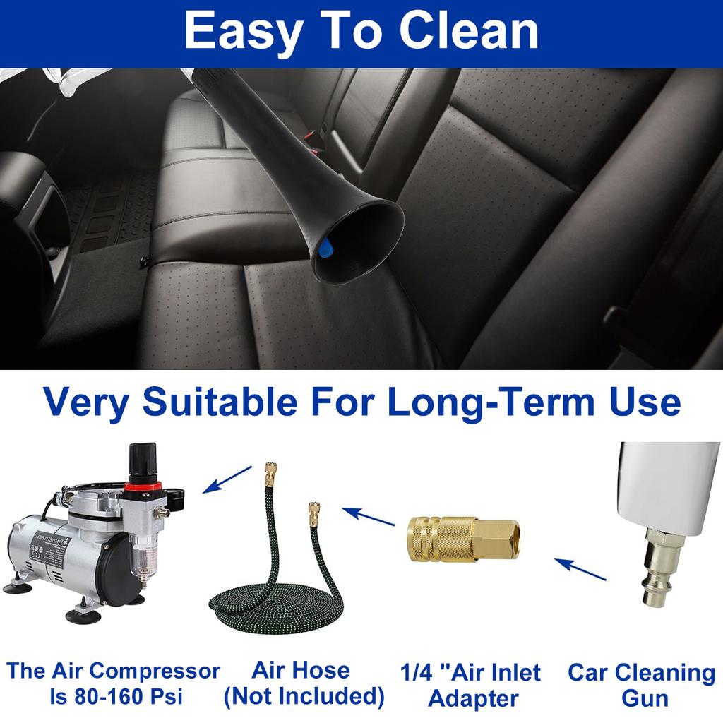 [Многофункциональный] Инструмент для сухой чистки сжатым воздухом оснащен высокоскоростным поворотным комплектом на 360 градусов, который позволяет охватить все труднодоступные места для эффективной очистки.. С-образный крючок для удобства размещения.