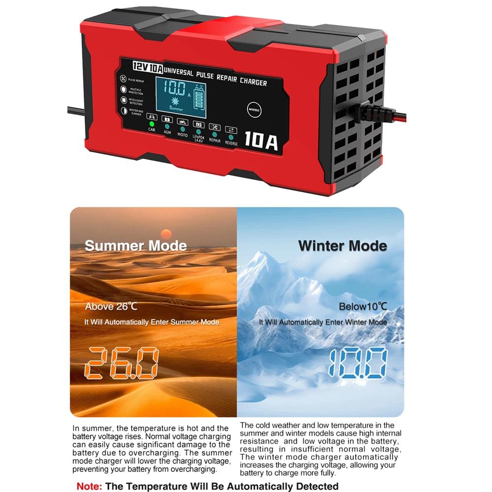 12 В 10 А автомобильное зарядное устройство для свинцово-кислотных AGM GEL PB литиевых аккумуляторов Lifepo4 автомобильное зарядное устройство для импульсного ремонта интеллектуальное зарядное устройство с ЖК-дисплеем