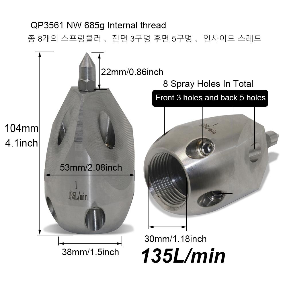 Высоконапорная насадка для прокола, чтобы очистить засоренный трубопровод от шлама и масляной грязи, аксессуары из нержавеющей стали, керамические отверстия для очистки