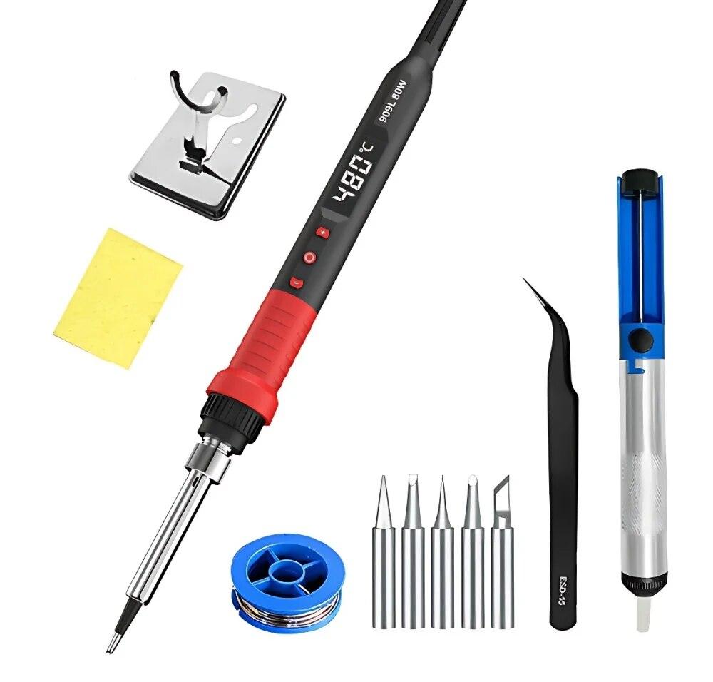 Комплект паяльника 80 Вт Регулируемая температура ЖК-дисплей Припой Сварочные инструменты Керамический нагреватель Наконечники для пайки Пинцет Паяльная проволока