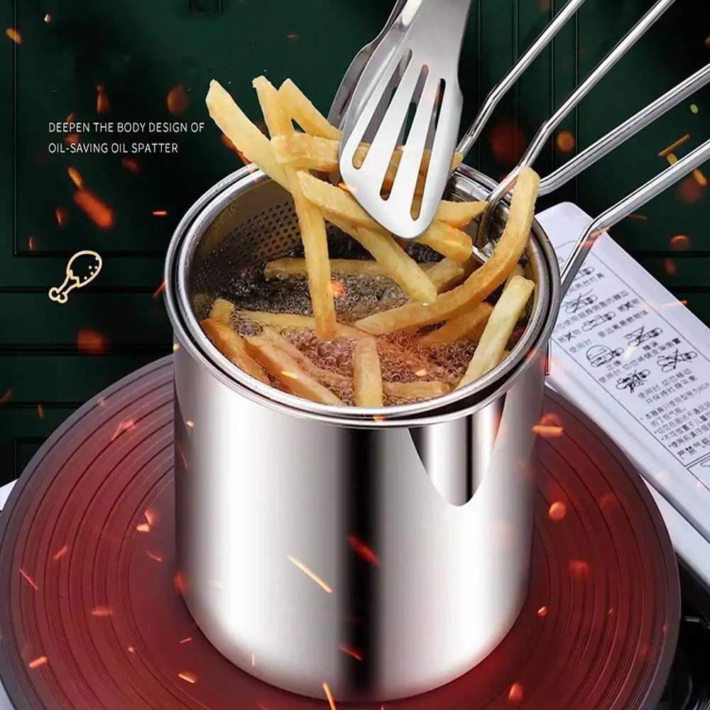 Фритюрница из нержавеющей стали с корзиной для жарки, многофункциональная, небольшая кастрюля, для жарки курицы и других принадлежностей для готовки