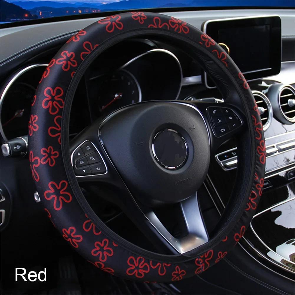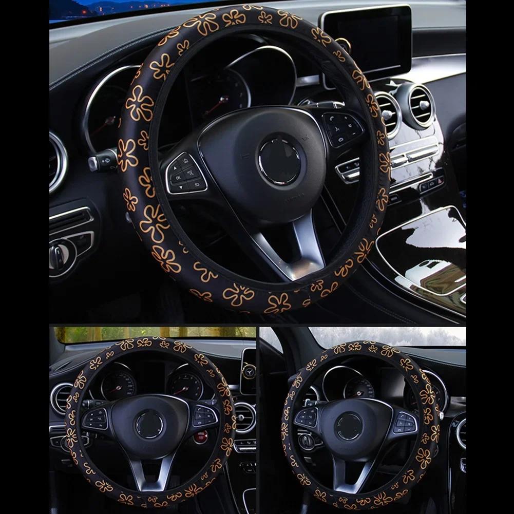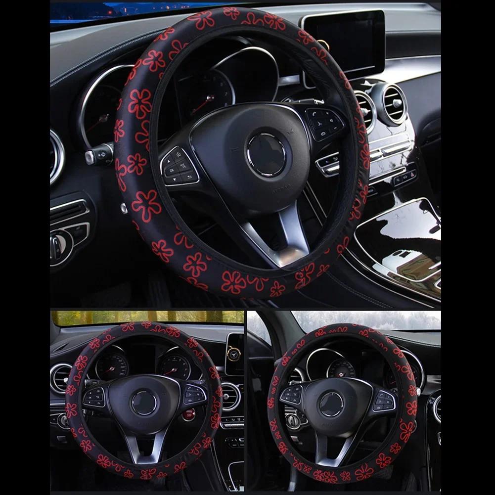 38 см чехол на руль автомобиля, чехол на руль для женщин, чехол на колесо, противоскользящий чехол с цветочным принтом, Funda Volante, автомобильные аксессуары