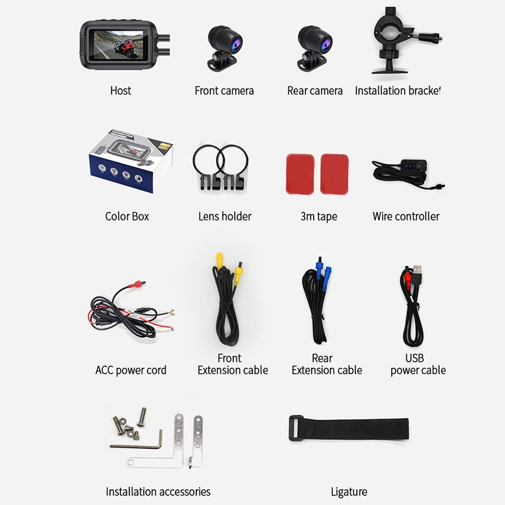 Двойной 1080P мотоциклетный видеорегистратор мотоциклетный видеорегистратор черный ящик парковочный монитор передний задний вид двойной объектив мотоциклетный видеорегистратор видеорегистратор