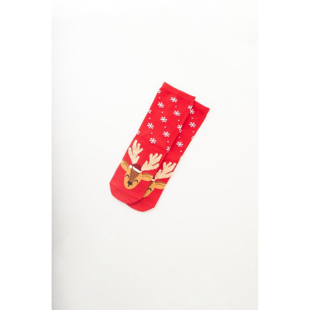 Женские новогодние носки с рисунком оленя, красные
