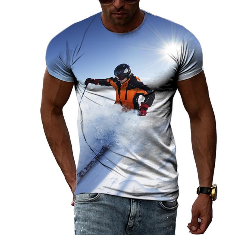 Летняя мода скейтборд спортивные соревнования лыжные мужские футболки повседневный принт хип-хоп Харадзюку личность круглый вырез короткий рукав топ