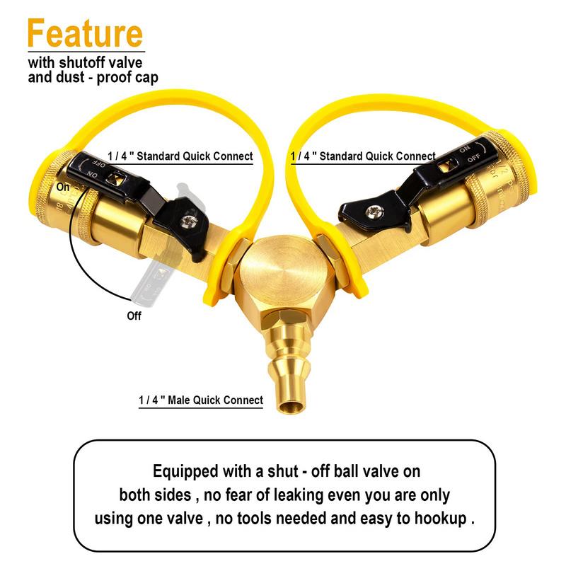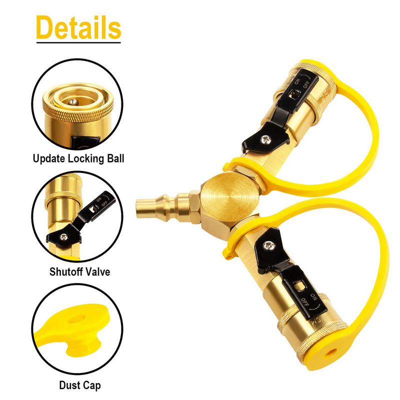 Разветвитель быстрого соединения для RV, 2-ходовой адаптер с быстроразъемным соединением 1/4 дюйма, 2-ходовой адаптер для шланга быстрого соединения для походных плит для RV