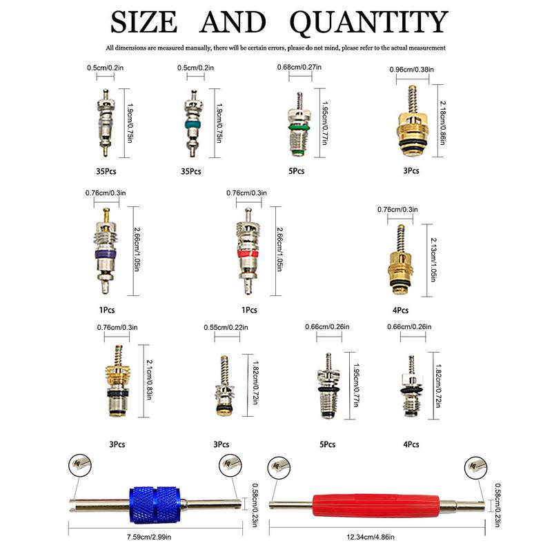 Сердечник клапана автомобильного кондиционера 102 шт. Комплект для кондиционера шток клапана охлаждения переменного тока с инструментом для снятия двойной головки
